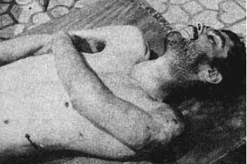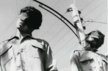 "They took me to a yard where there were four wooden posts in a semi-circle, and they tied each of us to a post. The first was a boy of 14 or 15, a member of the Mojahedine organization. The second was an army officer and the third, aged about 23, was a member of Paykar. I was the fourth. The time before, when they asked if I had a last wish, I asked them to remove my blindfold, so this time they did not blindfold me. I saw the bullet hit the boy and the officer was hit in the stomach. The Peykar man may already have been dead, his body didn't react to the bullet. The young boy was shaking violently with a bullet in his body. His hands were tied and he was trying with all his might to free himself. He was bleeding profusely. I shouted "what are you waiting for? Why don't you shoot me?" They laughed, and I could do nothing. The young boy died, then the officer. I had just stood there and watched them suffering..." From a prisoner who described his experience in the prison of the Islamic Republic.