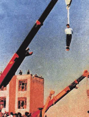 The Islamic Republic's record on Human Rights abuses is apparent in the forms of punishment that are prescribed by the clergy and carried out in public by the Judicial Police, the Islamic Guards and sometimes the public. These punishments range from the most ridiculous that requires vandals to ride around their neighborhood on donkeys, facing backwards, to the most outrageous and unforgiving practice of the public stoning of adulterers to death. Public hangings and floggings, the cutting off of the hands, amd the gouging of the eyes are but a few examples of the cruel and inhuman punishments that have been practiced under the rule of the Islamic Republic. Aside from the above there is also the Islamic ground for crucifixion, which is perhaps the most shocking and outrageous punishment of all. Although an actual case of crucifixion happening has yet to be recorded in Iran, yet it must be of concern to all Human Rights advocates that such a practice is still considered to be a legal form of punishment, in that it is institutionalized in the Penal Code of the Islamic Republic. The laws, outlined below, make it clear that the purpose of crucifixion is to inflict severe pain which may lead to death: